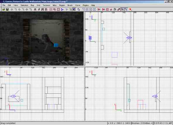 zerstörbare Brushs:verwendete Map: "tutor27.map" Hier erkläre ich dir, wie man einen zerstörbaren Brush macht. Da Bilder, Wände, Tafeln usw. auch nur Brushs sind, kann man diese auch über diese Methode zerstörbar machen. Zu diesem Zweck habe