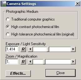 Wenn mit einem Fotofilm gearbeitet wird, so simuliert dies die Belichtung